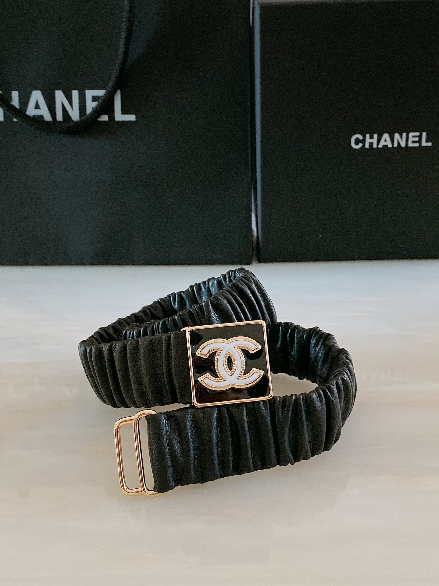 New Spring/Summer 2022 style, made of calfskin, gold and precious resin, in black and white, with CC logo buckle, 3.0mm fine quality, available in sizes S, M, L, XL.