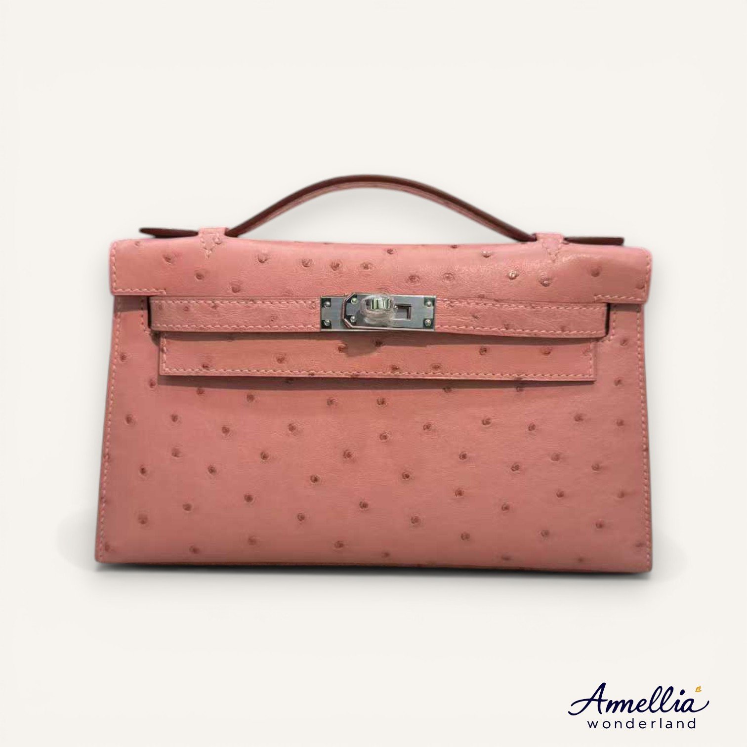 Terre Cuite Kelly Pochette Ostrich leather Silver
